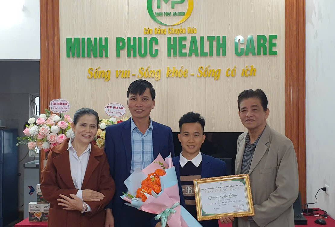 Tổng Giám Đốc công ty Minh Phúc Holding cùng Cố vấn chuyên môn Nguyễn Hồng Hà trao chứng nhận và hoa chúc mừng Câu lạc bộ